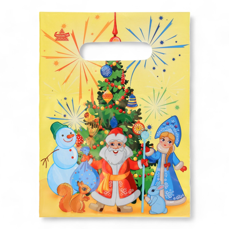 / 10636551 Пакет "С Новым годом! Хоровод: Дед Мороз, Снегурочка и снеговик" Размер 20 х 30 см.