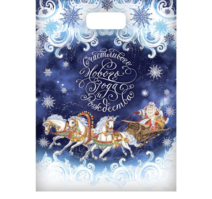 2477861 Пакет "Дед Мороз и тройка лошадей" Размер 23 * 29,5 см.