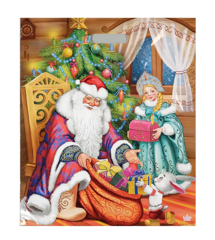 4503306 Пакет ПВД "С Новым годом! Дед Мороз и Снегурочка" Размер 38 х 45 см. Плотность 60 мкм