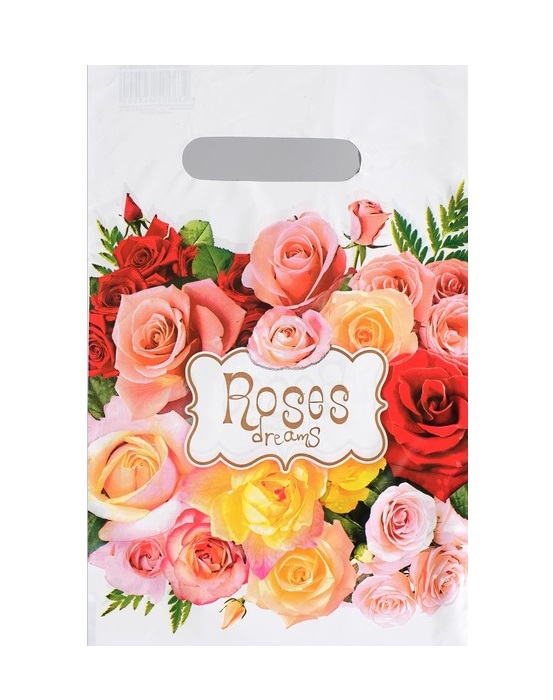 1464458 Пакет белый "Roses dreams: Мечты из роз" Размер 20 х 30 см. Плотность 30 мкм