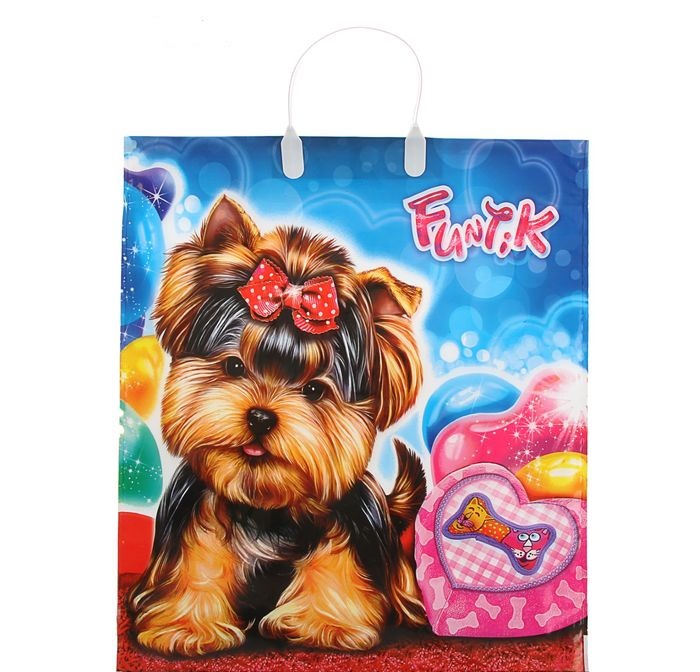 1793226 Пакет ПВД "Щенок Фунтик" с петлевой ручкой. Размер 44 *40 см. Мах.вес 25 кг.