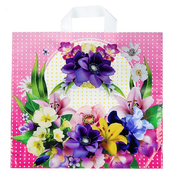 3375356 Пакет ПВД горизонтальный "Цветы" с петлевой ручкой.Размер 40 *36 см.