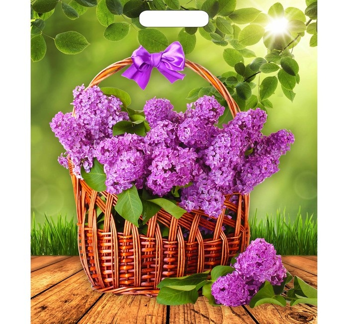 4359542 Пакет ПВД "Букет сирени в корзинке " Размер 38*45 см. Максим. вес 5 кг