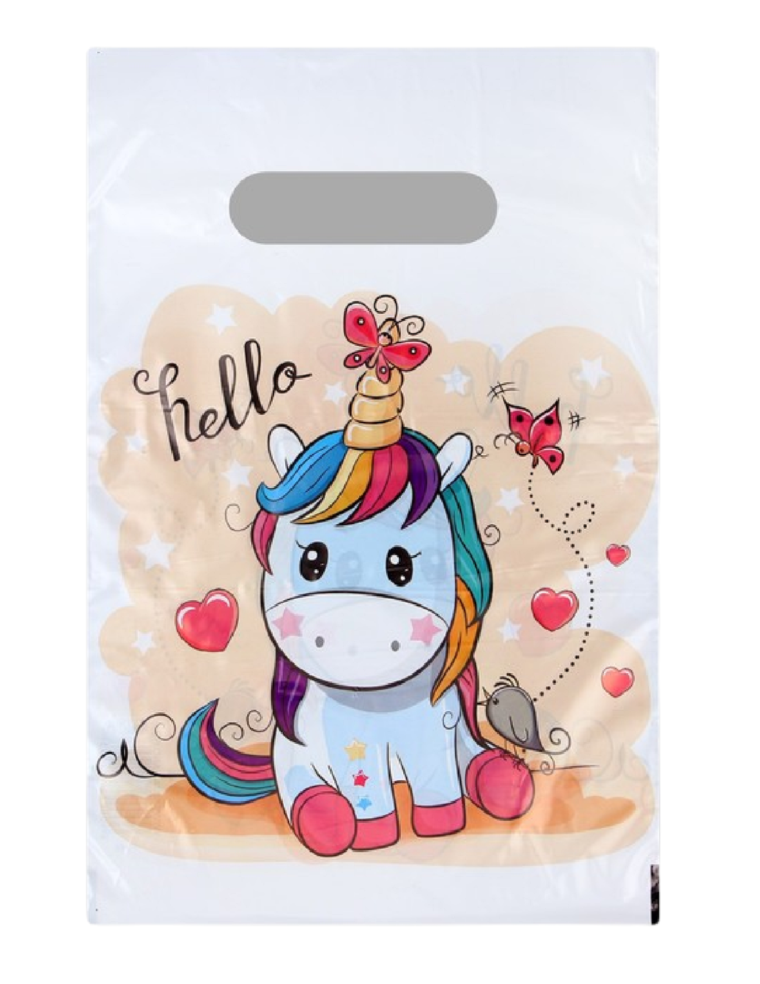 7394199 Пакет белый "Hello Единорог" Размер 19,5 х 29,5 см. Плотность 30 мкм
