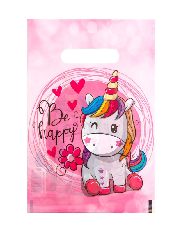 9687101 Розовый пакет "Единорожка: Будь счастлив!" Размер 19,5 х 29,5 см. Плотность 30 мкм