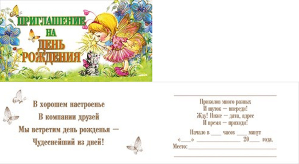 097.480 Приглашение на день рождения "Девочка с котенком" Тиснение золотом
