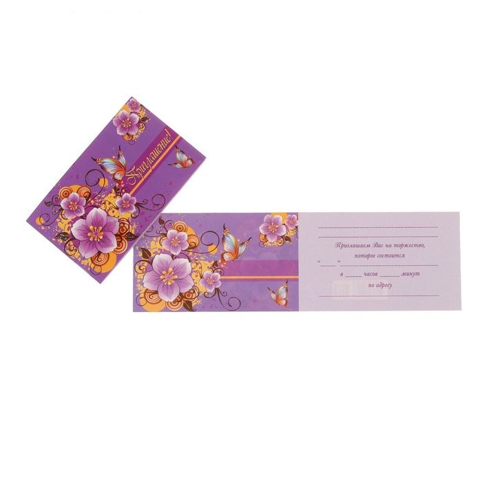 2756640 Приглашение универсальное "Цветы и бабочки на сиреневом фоне"