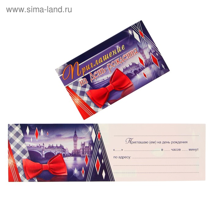 3137078 (2-83-341 А) Приглашение на День рождения "Красная бабочка" мужское с текстом