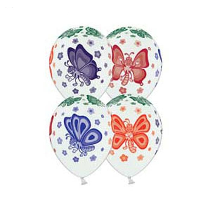 1298049 (1103-1056) Шарик 5-сторонний "Бабочки" Диаметр 35 см.Цвет белый