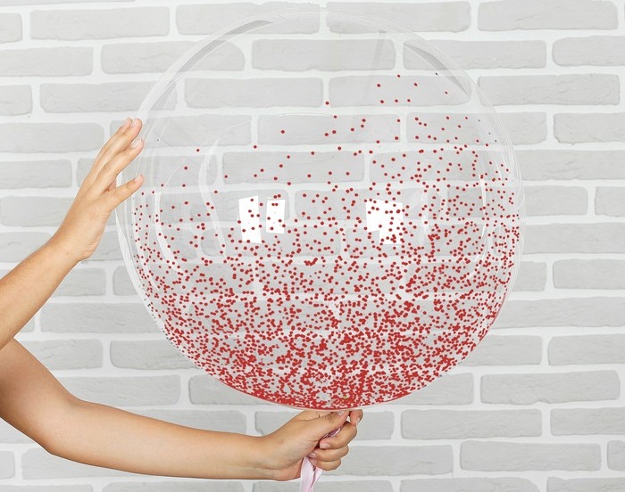 2831653 Шарик прозрачный с красным мелким конфетти. Диаметр 45 см.