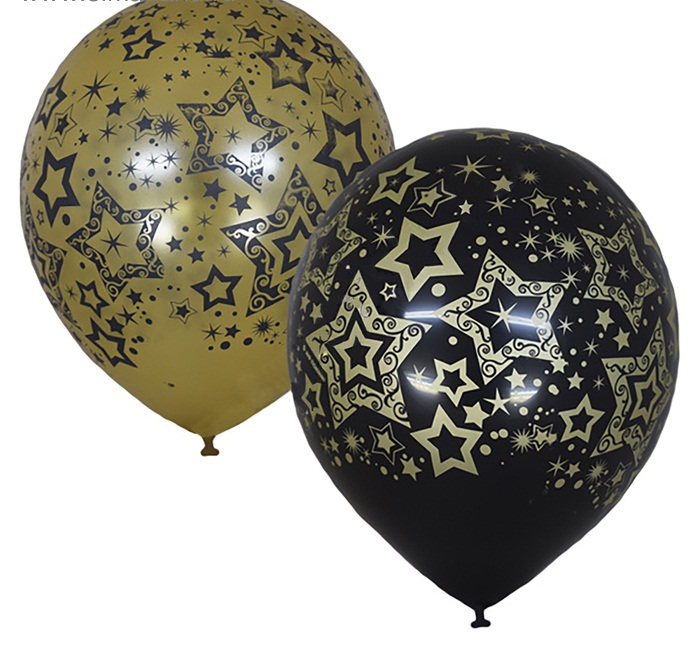 3472137 Шарик матовый 5-сторонний "Звезды" Диаметр 30 см. Цвет золотой и черный