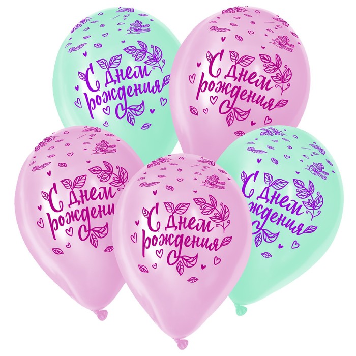 5428208 Шарик 5-сторонний "С Днем рождения!" ( с гелием) D 30 см. Колумбия Цвет мятный и нежно розов