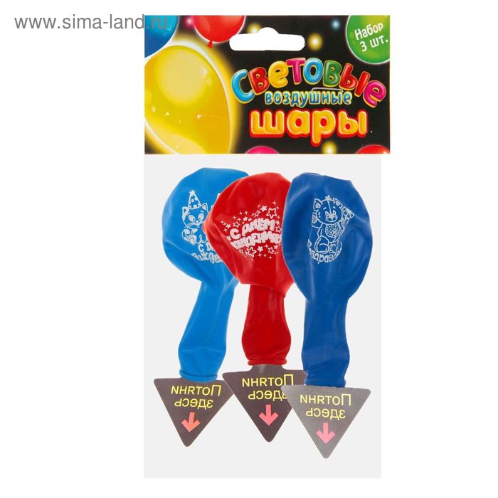975440 Набор шаров "С Днем рождения! Котики" (3 шт.) со светодиодами. Диаметр 30 см.