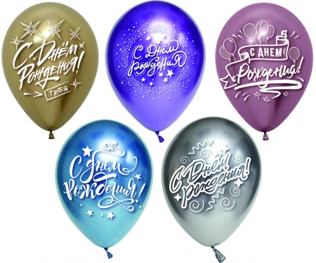 БК 42809 Шарик ХРОМ 2-сторонний "С Днем рождения!" Диаметр 35 см. Тайланд