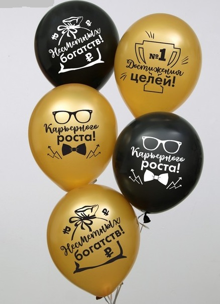 3934449 Шарик 1-сторонний "Карьеристу!" Диаметр 30 см. Цвета черный и золотой