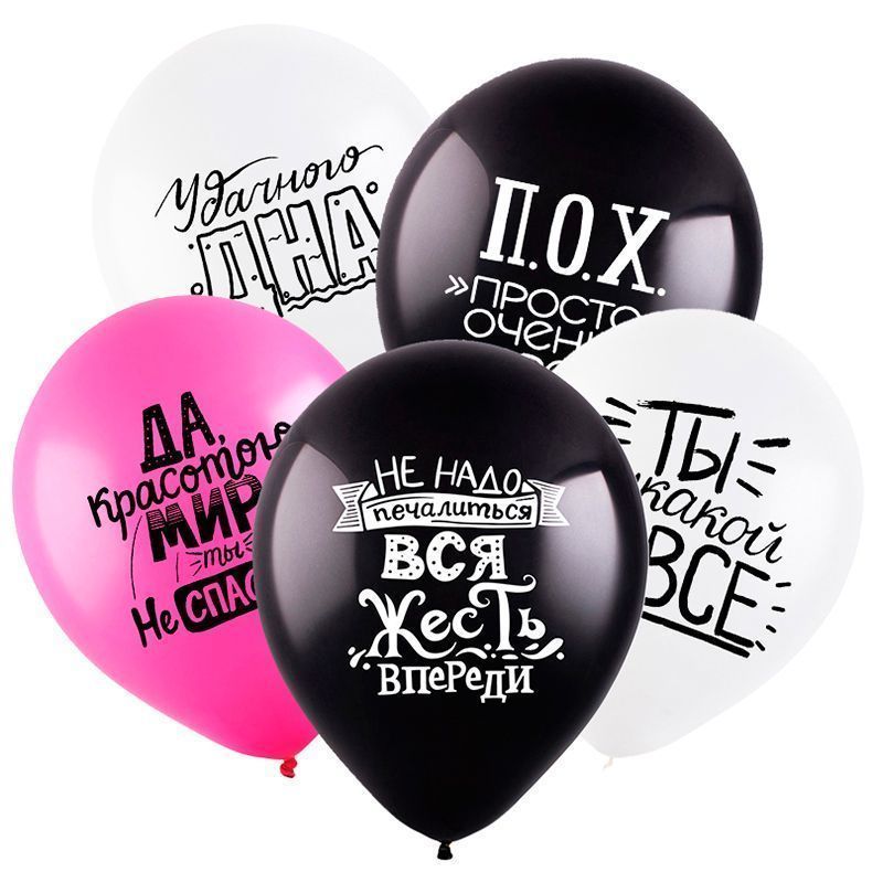 БР 8122075 Шарик 2-сторонний "Черный юмор" Цвет белый,черный и фукси.Диаметр 30 см.Турция