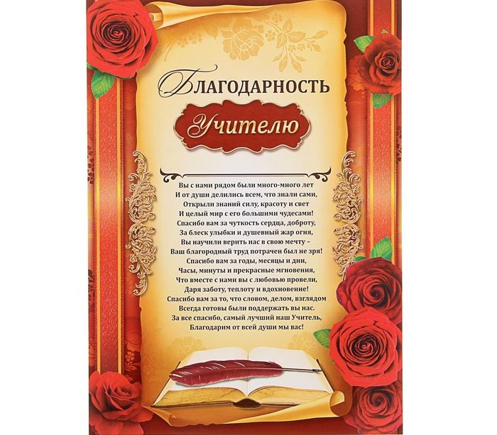 1220137 Благодарность учителю с текстом.Формат А4