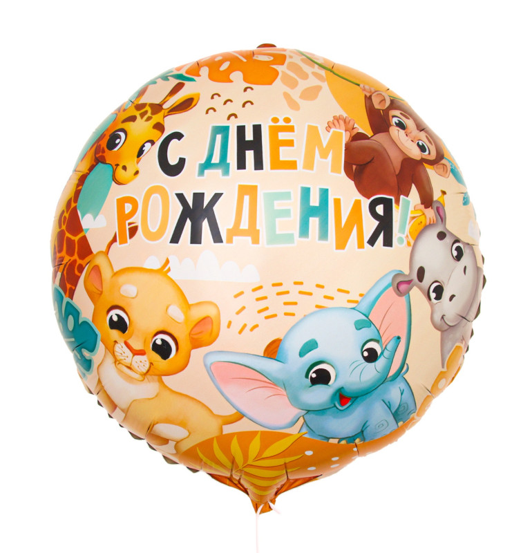 10198641 Фольгированный круг "С Днем рождения! Сафари" D 45 см. (с гелием)