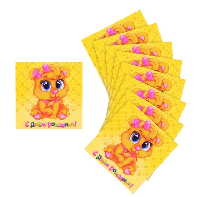 1038980 Набор салфеток "С Днем рождения! Мишка с бантиком" (20 шт.) Размер 33 * 33 мл.