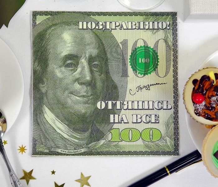 1039003 Набор салфеток "Поздравляю! Оттянись на все 100%" (20 шт.) Размер 33*33 см.