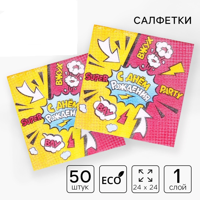 5067344 Набор салфеток "С Днем рождения!" (50 шт.) Размер 25 х 25 см.