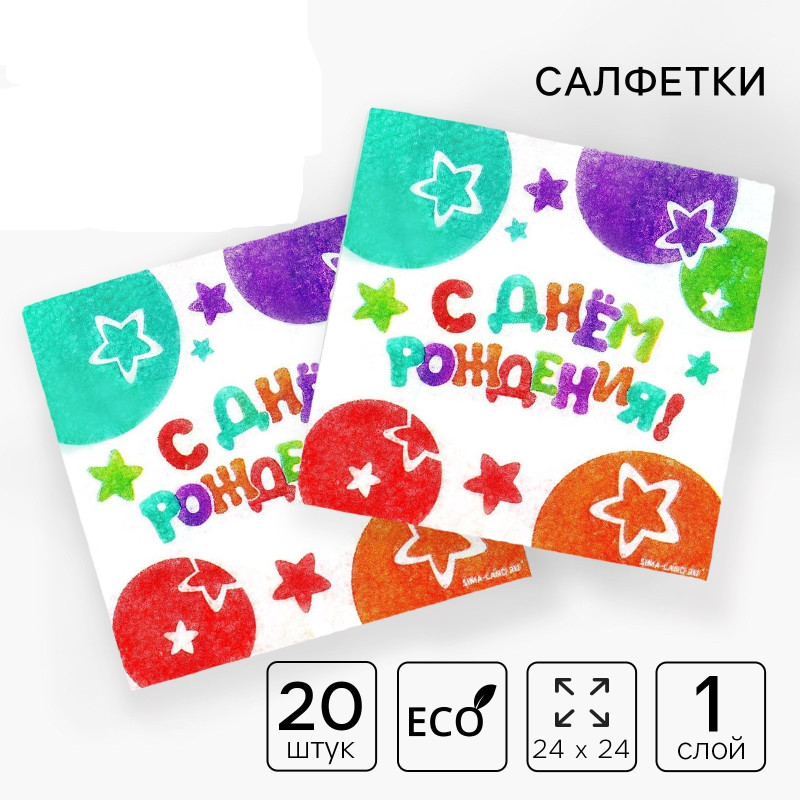 7756551 Набор салфеток "С Днем рождения! Воздушные шарики" (20 шт.) Размер 25 х 25 см.