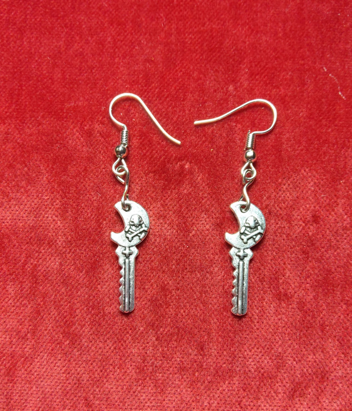 WW СР-22/10 Серьги "Череп с костями на ключе" (2 шт.) Цвет: серебро Длина 5,1 см.