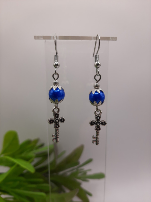 WW СР-22/17 Серьги с синим камнем (2 шт.) Цвет: серебро Длина 5,5 см.