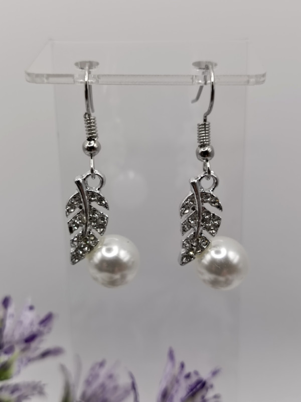 WW СР-23/4 Серьги "Листик с жемчужиной" (2 шт.) Цвет: серебро Длина 4 см.