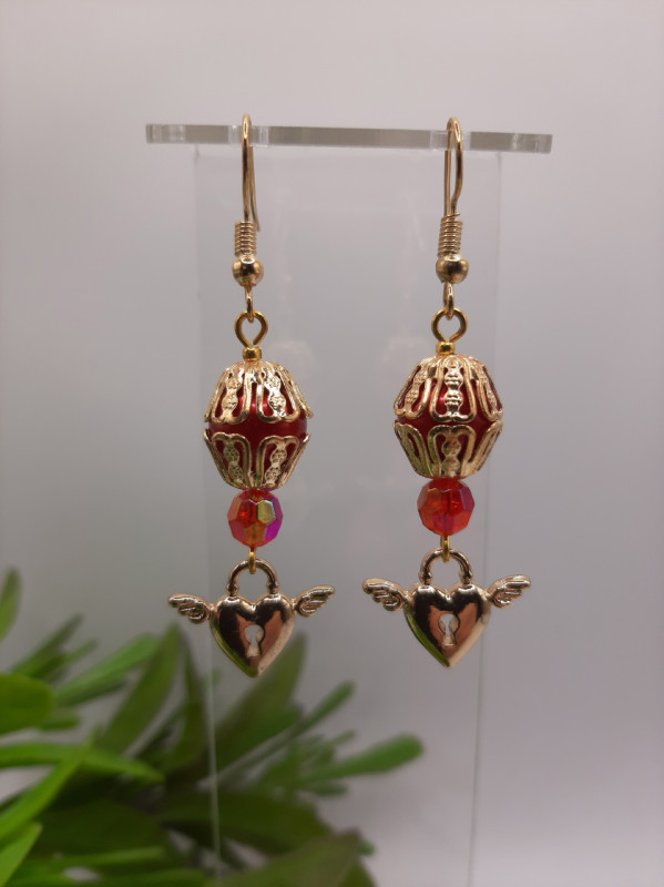 / WW ЗЛ-22/10 Серьги "Замочек с крыльями и красными камням" (2 шт.) Длина 5,9 см. Цвет золотой