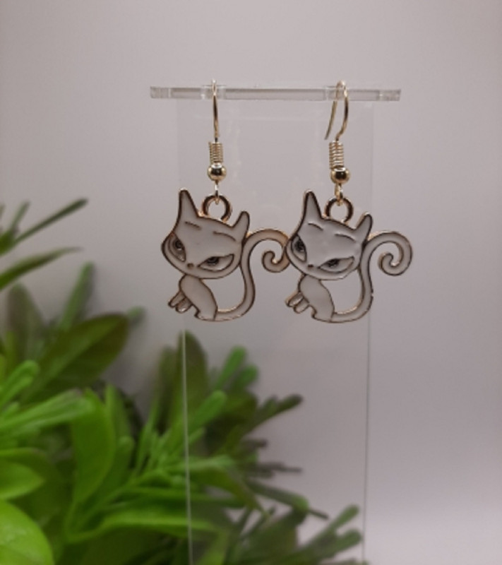 WW ЗЛ-22/6 Серьги "Белая кошечка" (2 шт.) Цвет золотой. Длина 3,7 см.