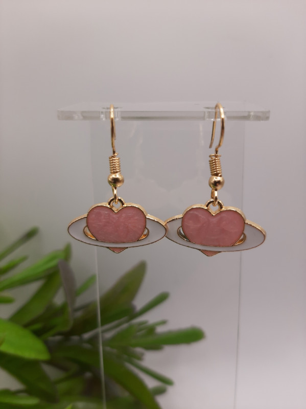 WW ЗЛ-23/1 Серьги "Розовое сердечко в белом круге" (2 шт.) Цвет: золото Длина 3 см.