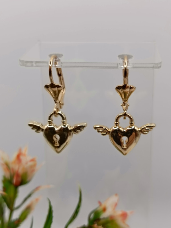 WW ЗЛ-23/27 Серьги с застежками "Золотое сердце с крыльями" (2 шт.) Цвет: золото Длина 2,7 см.
