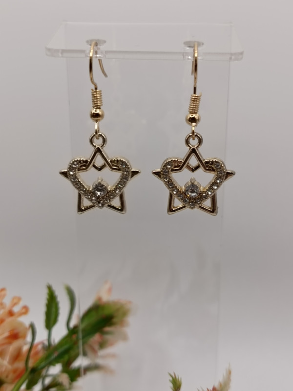 WW ЗЛ-23/30 Серьги "Золотое сердце в звезде" (2 шт.) Цвет: золото Длина 4,7 см.
