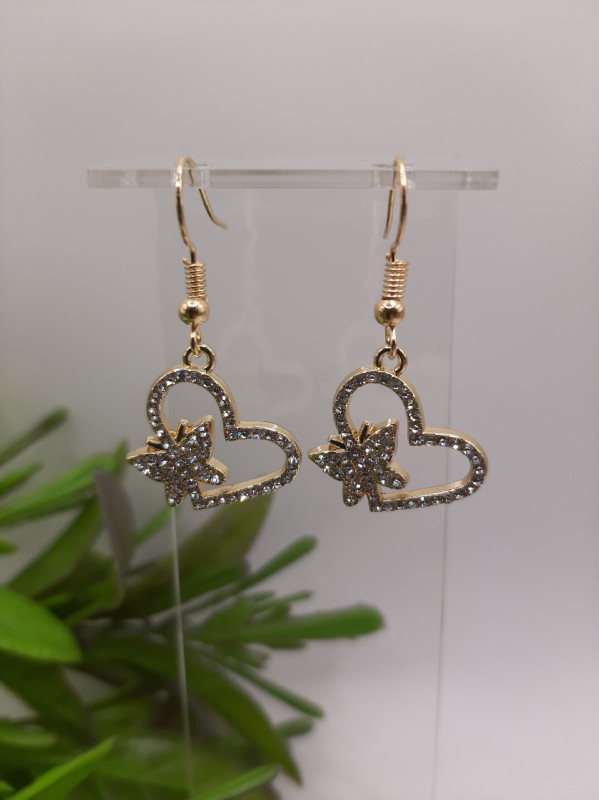 WW ЗЛ-23/7 Серьги "Бабочка на сердечке" (2 шт.) Цвет: золото Длина 3,8 см.