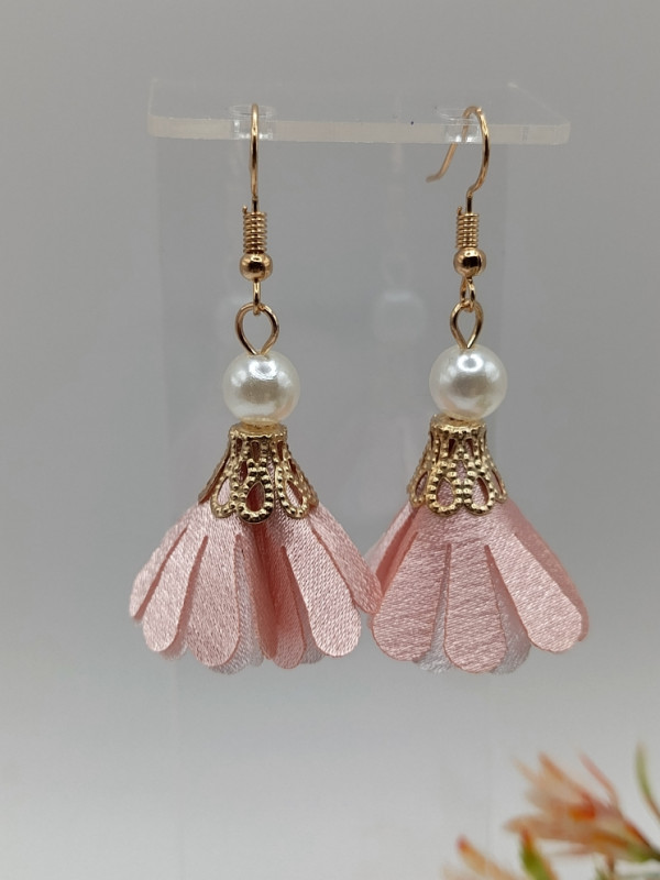 WW ЗЛ-24/22 Серьги "Нежно розовый с белым бутон" (2 шт.) Цвет: золото