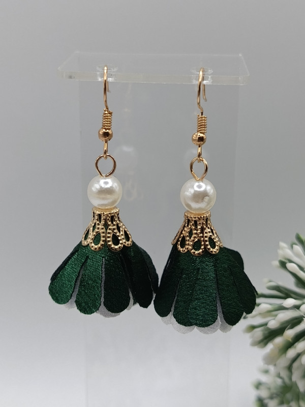 WW ЗЛ-24/26 Серьги "Темно зеленый с белым бутон" (2 шт.) Цвет: золото