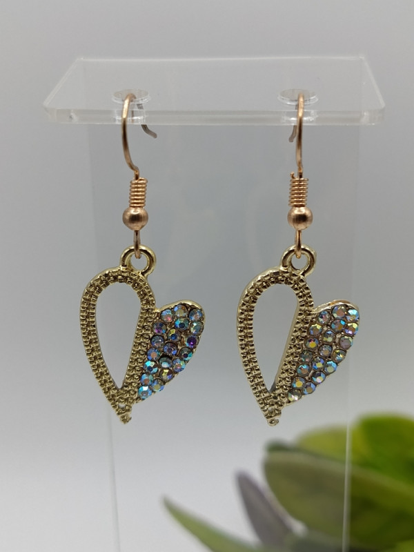 WW ЗЛ-24/47 Серьги "Сердечко со стразами" (2 шт.) Цвет золотой. Длина 4,5 см.