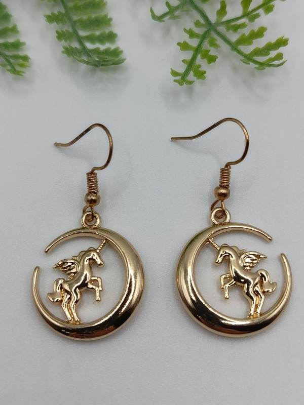 WW ЗЛ-24/49 Серьги "Единорог в кругу со стразами" (2 шт.) Цвет золотой. Длина 4,5 см.