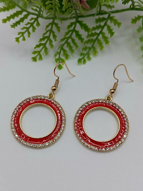 WW ЗЛ-25/14 Серьги "Красный круг в стразах" Цвет: золотой