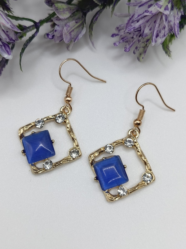 WW ЗЛ-25/15 Серьги "Синий камень в ромбе" Цвет: золотой