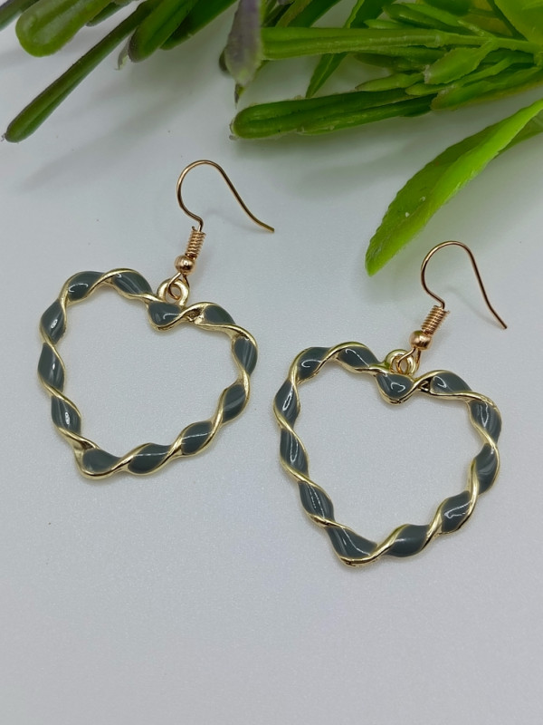 WW ЗЛ-25/19 Серьги "Зеленое плетеное сердце" Цвет: золотой