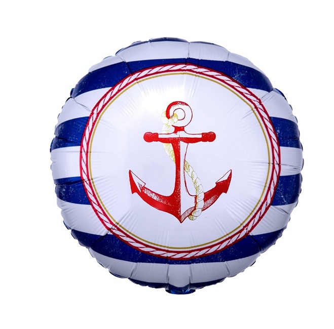 10517853 (ВЗ 1202-3960) Фольгированный круг "Морская тематика: якорь и штурвал" D 45 см. (с гелием)