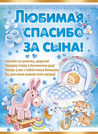 02.486.00 Плакат плотный " Любимая, спасибо за сына!" Формат А3