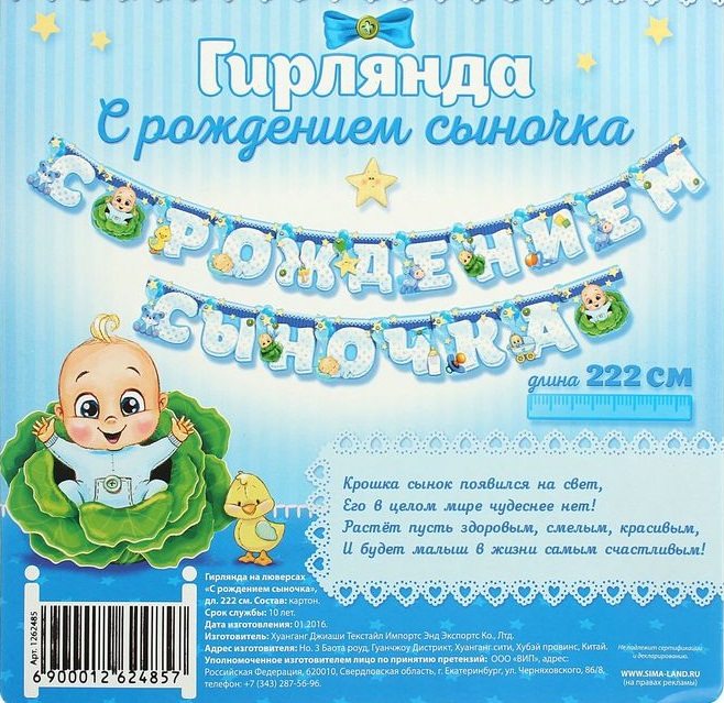 1262485 Гирлянда " С Рождением сыночка!" Длина 222 см.