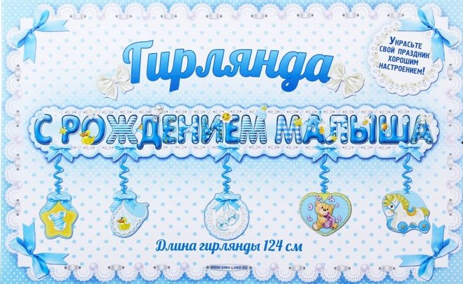 141601 Гирлянда "С рождением малыша!" с подвесами на спиралях. Длина 124 см.