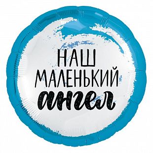 ДБ 753750 Голубой фольгированный круг голограмма "Наш маленький ангел!" D 45 см. (с гелием)