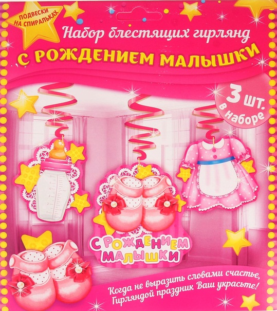 1062368 Набор блестящих гирлянд - спиралей " С Рождением Малышки!". ( 3 шт.)