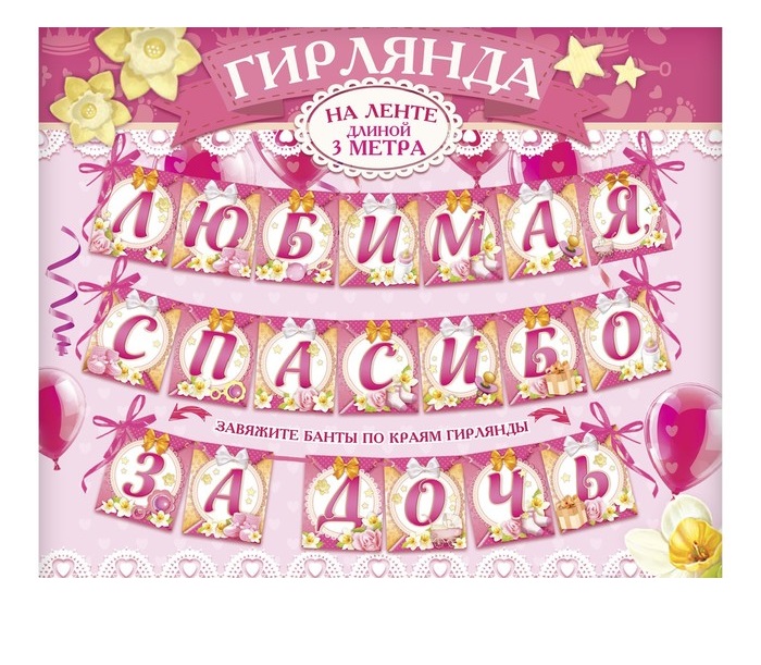 2691898 Гирлянда на ленте "Любимая, спасибо за дочь!" Длина 300 см.