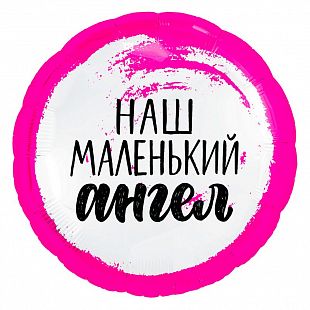 ДБ 753736 Розовый фольгированный круг голограмма "Наш маленький ангел!" D 45 см. (с гелием)